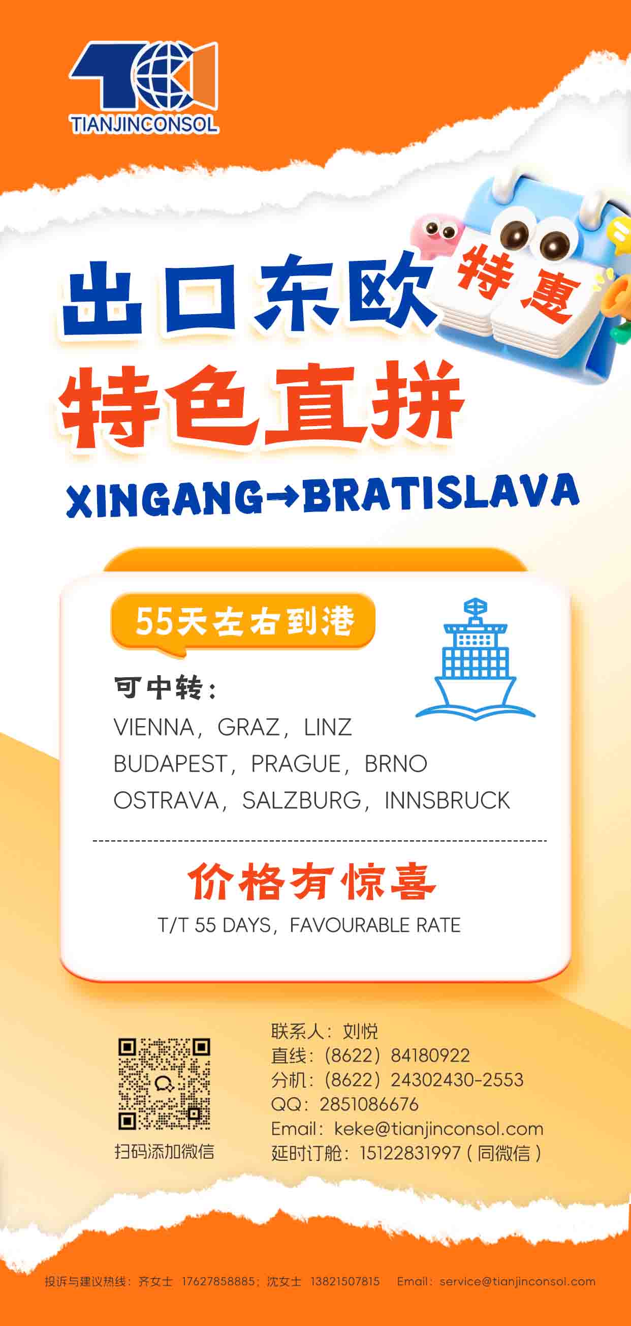 XINGANG→BRATISLAVA特色直拼 價格優(yōu)惠 多港可轉(zhuǎn)