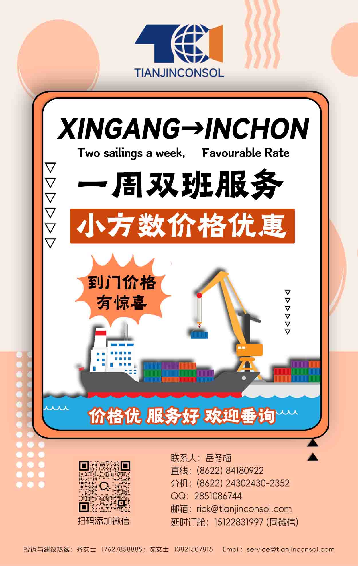 XINGANG→INCHON價(jià)優(yōu)服務(wù)好 雙11活動(dòng)持續(xù)中