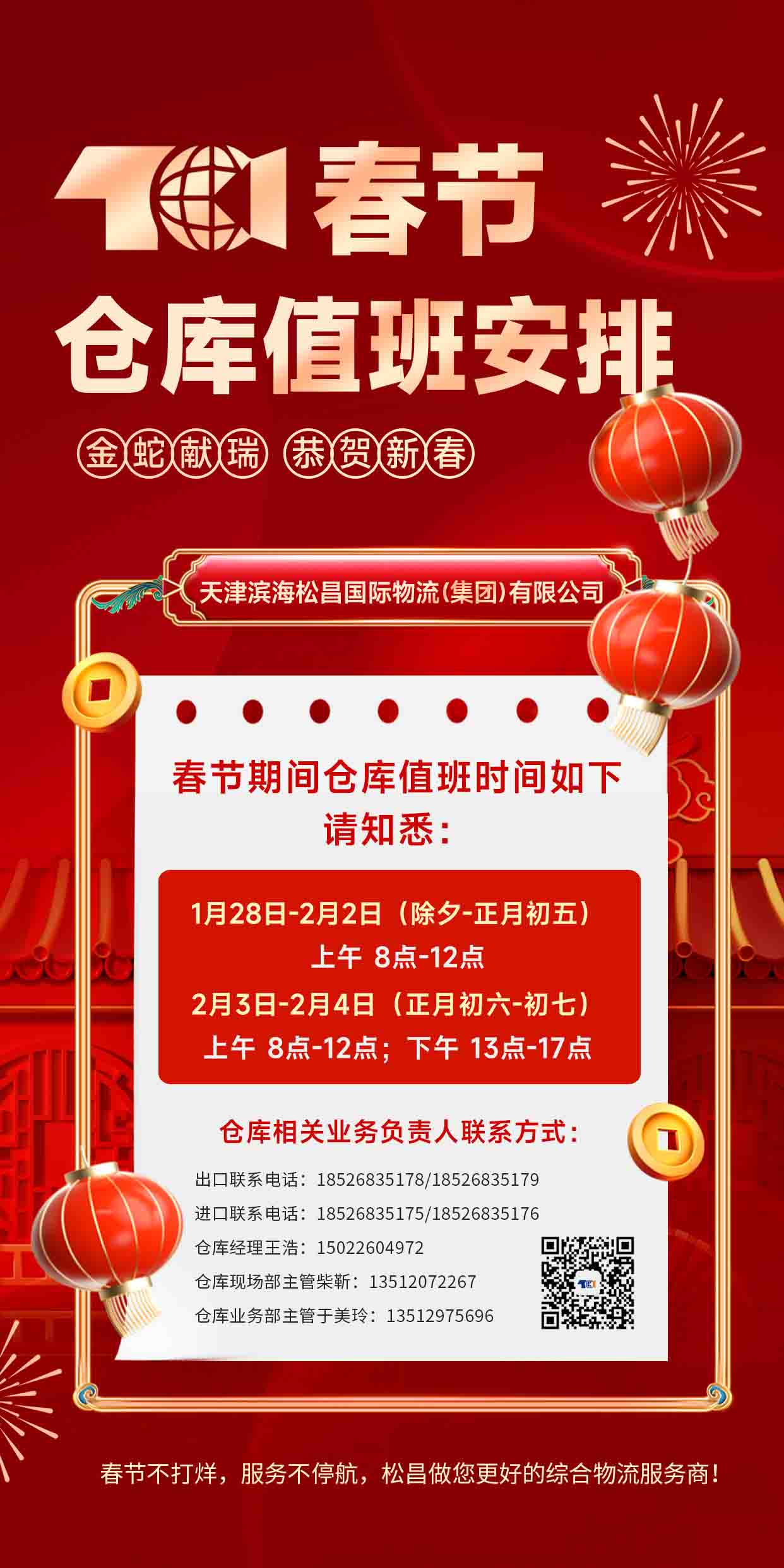 松昌春節(jié)期間倉(cāng)庫(kù)值班安排