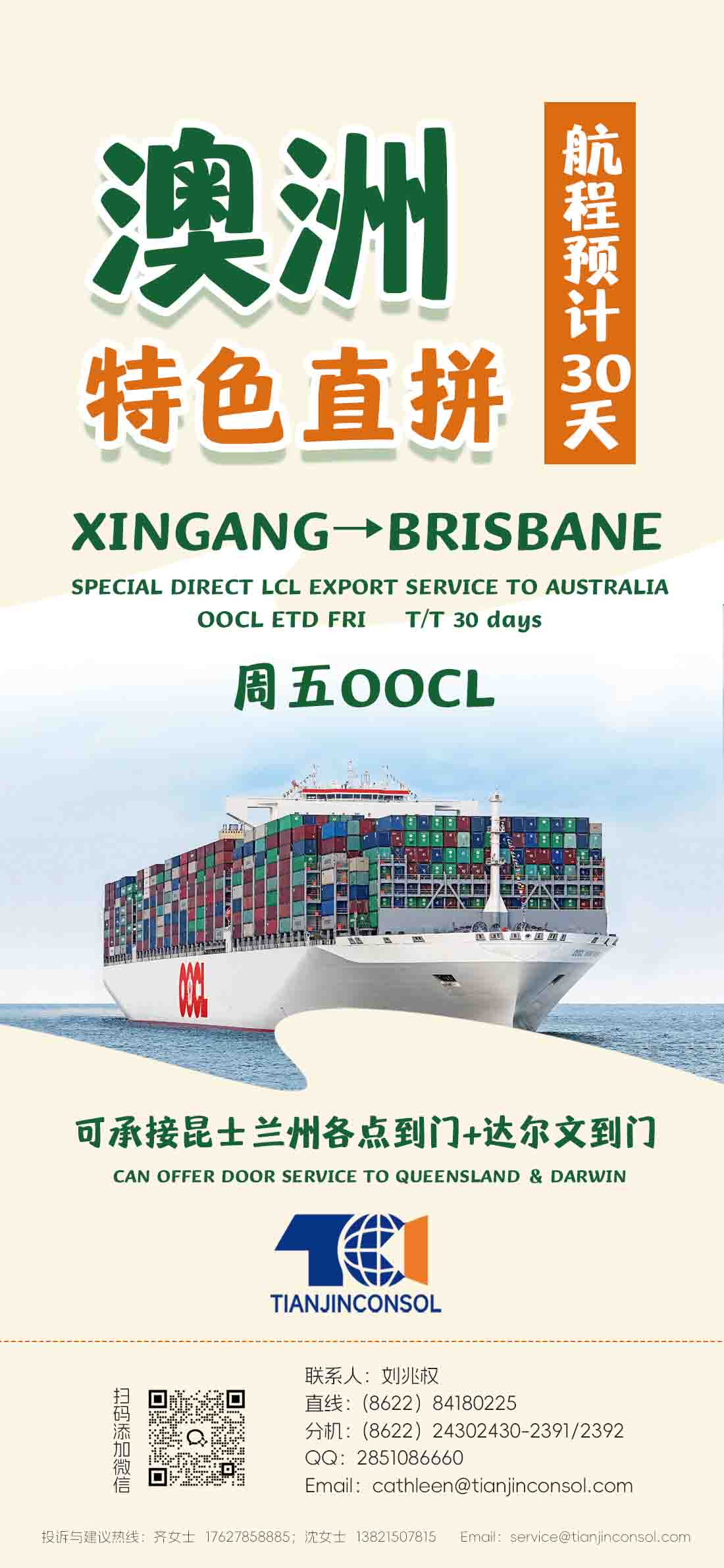 XINGANG→BRISBANE 昆士蘭州/達(dá)爾文到門無憂